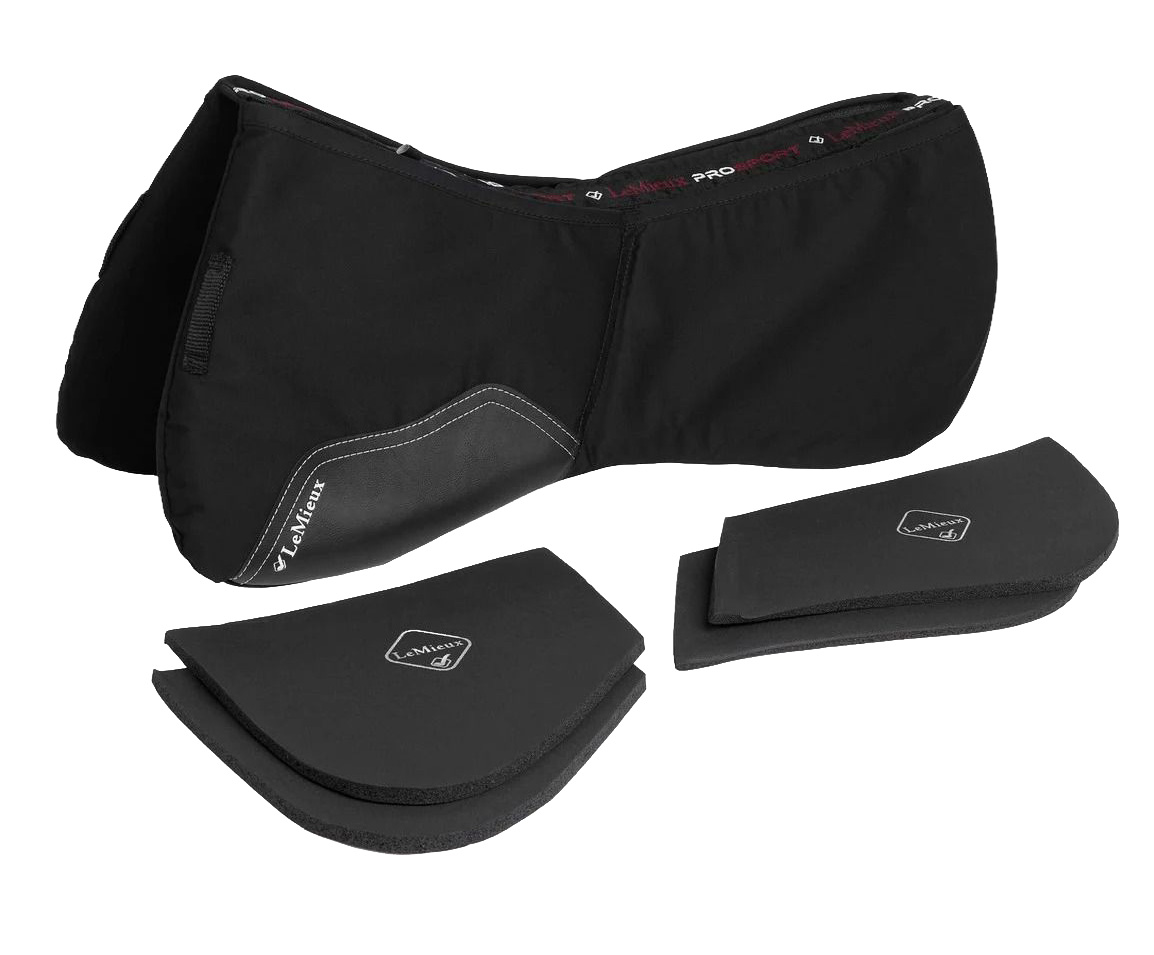 Par exemple, si votre selle est déjà ajustée au « millimètre » sur votre cheval, choisissez un amortisseur fin uniquement si vous souhaitez une protection supplémentaire sans modifier l’équilibrage.