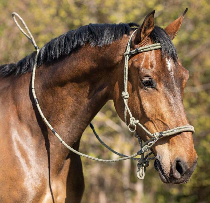 Un licol éthologique est un licol en corde, généralement constitué de nœuds stratégiquement placés sur des points de pression précis de la tête du cheval.