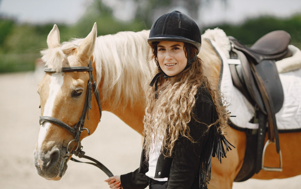 Vérifiez toujours que vous disposez d’une bombe correctement ajustée, que vos chaussures sont adaptées (bottes ou boots fermées) et que votre pantalon d’équitation est confortable pour éviter les distractions.