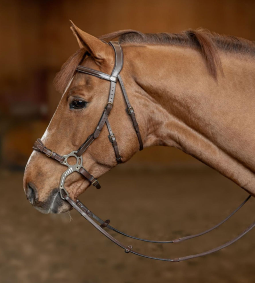 Ce système diffuse la pression sur l’ensemble de la tête, évitant les impacts concentrés sur le nez ou la nuque. Il séduit les cavaliers en recherche de douceur et d’une communication plus diffuse, à condition que le cheval soit déjà bien dressé à répondre aux légères aides.