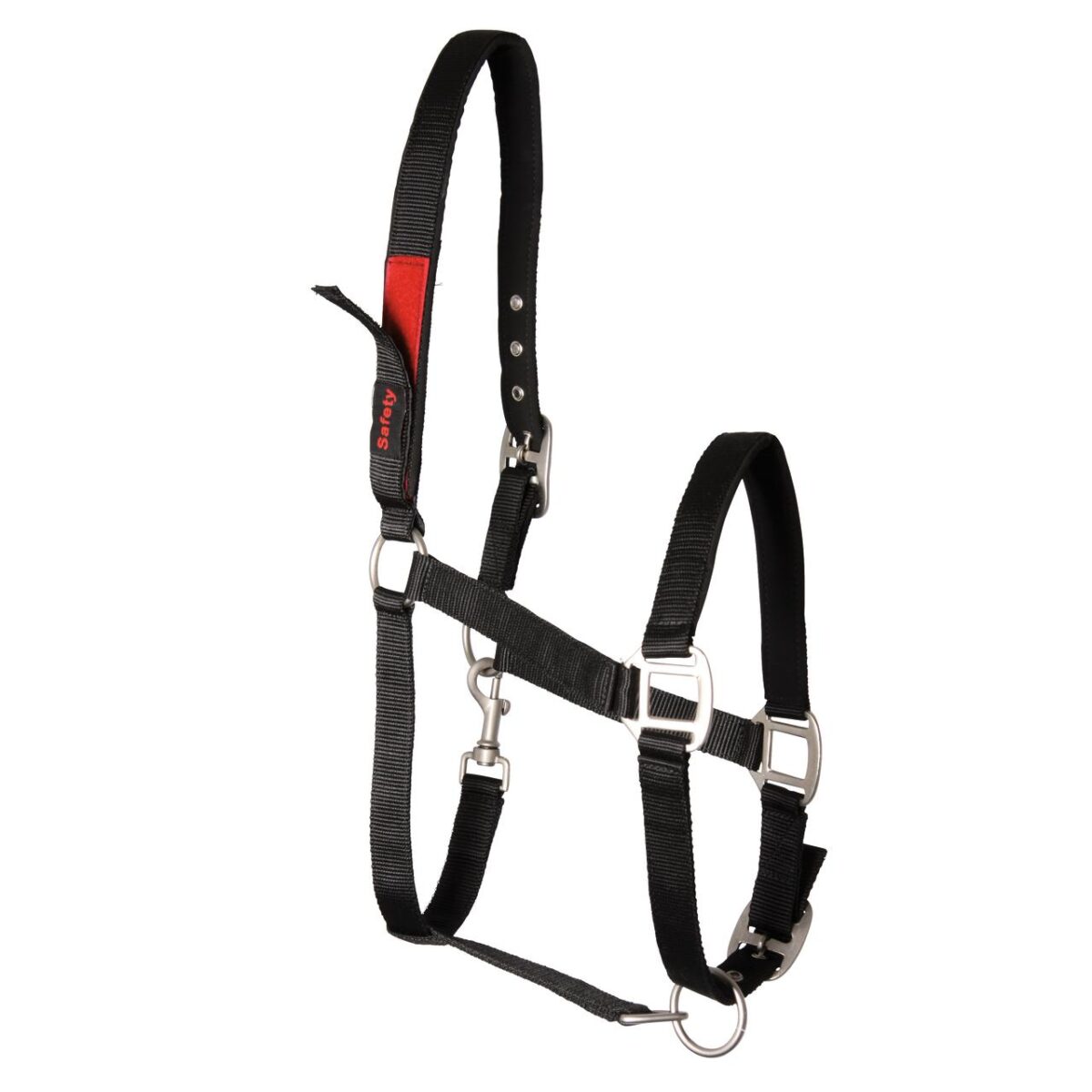 Sa têtière intègre une fermeture scratch de sécurité qui se détache sous tension. Ce système permet au cheval de se libérer plus facilement s’il reste coincé dans une clôture ou une branche.