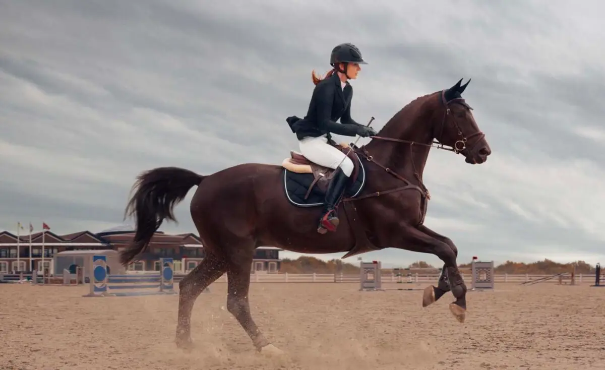 En saut d’obstacles ou en concours complet, la martingale est souvent utilisée pour maintenir le cheval dans un cadre rassurant, surtout lors des phases de stress ou d’excitation intense sur le parcours.